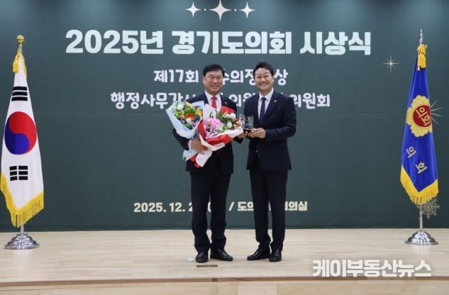 케이부동산뉴스 김교민 기자 | 경기도의회 교육기획위원회 이택수 의원(국민의힘, 고양8)과 성기황 의원(더불어민주당, 군포2)이 26일 열린 2025년 경기도의회 시상식에서 ‘2025년 행정사무감사 우수위원’으로 선정됐다.