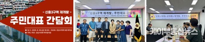 실제로 박 의원은 지난 8월 29일, 신흥3구역 주민대표들과 재개발과 간담회를 주선해 의견을 청취했으며, 9월 17일에는 태평3·상대원3구역 주민대표들과 함께 실무진과 면담을 추진하며 인센티브 기준 완화의 필요성을 직접 전달해왔다.