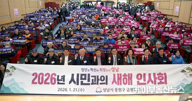케이부동산뉴스 김교민 기자 | 성남시의회는 21일 중원어린이도서관에서 열린 금광 1·2 동 새해인사회에 참석해 지역 주민들과 새해 인사를 나누고 소통의 시간을 가졌다.