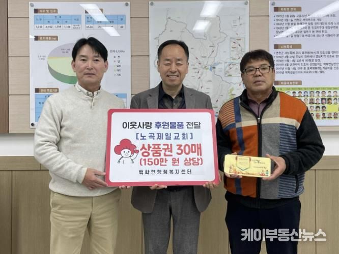 케이부동산뉴스 김교민 기자 | 연천군 백학면 노곡제일교회는 지난 4일 백학면행정복지센터를 방문해 설 명절을 맞아 소외계층에게 전달해달라며 농촌사랑상품권 150만 원을 기탁했다.