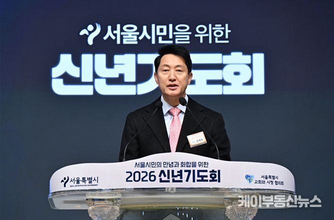 케이부동산뉴스 김교민 기자 | 오세훈 서울시장은 9일 오전 7시 20분, 신길교회(영등포구 영등포로67가길 9)에서 서울특별시교회와시청협의회 주최로 열린 ‘2026 신년기도회’에 참석해 서울 시민의 안녕과 화합을 위해 기도했다.