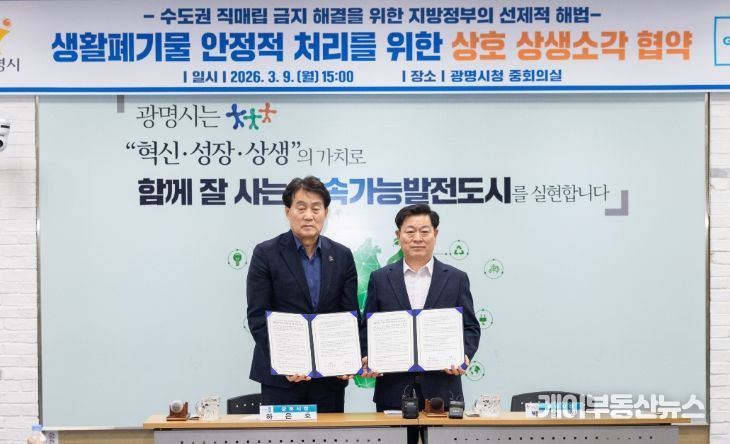 케이부동산뉴스 김교민 기자 | 광명시가 군포시와 함께 생활폐기물 소각시설을 공동 이용하는 ‘상생소각’ 모델을 전국 최초로 시행한다.