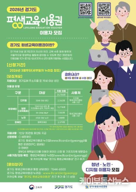 케이부동산뉴스 김교민 기자 | 안산시는 경기도와 함께 이달 31일까지 ‘2026년 제1차 경기도 평생교육이용권’ 지원사업 신청자를 모집한다고 11일 밝혔다.