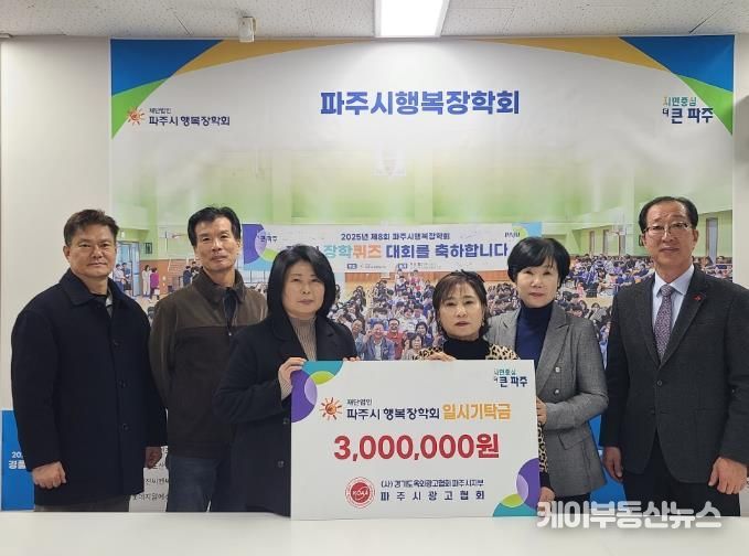 케이부동산뉴스 김교민 기자 | 파주시는 (재)파주시행복장학회가 지난 11일 파주시광고협회으로부터 장학금 300만 원을 기탁 받았다고 밝혔다.