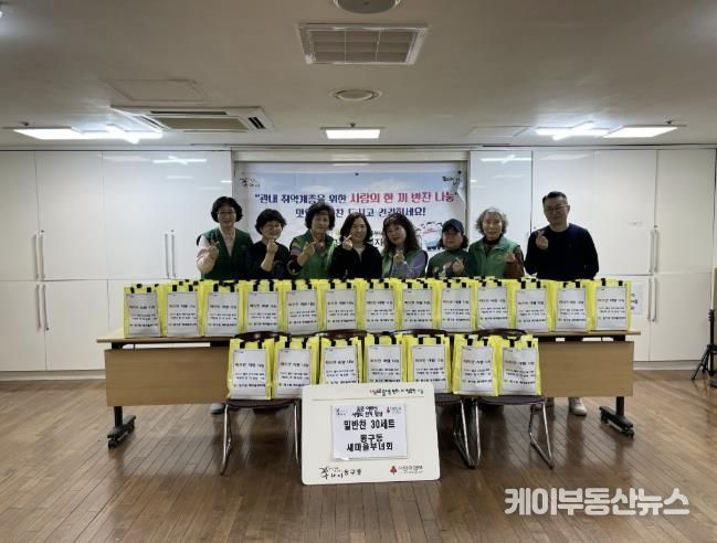 케이부동산뉴스 김교민 기자 | 구리시는 동구동 새마을부녀회가 지난 17일 동구동 행정복지센터에서 ‘홀로 어르신 사랑의 한 끼 밥상’ 나눔 봉사를 진행했다고 밝혔다. 이번 활동은 지역 내 홀로 거주하는 어르신들에게 정성껏 준비한 식사와 반찬을 전달하며 따뜻한 이웃의 정을 나누기 위해 마련됐다.