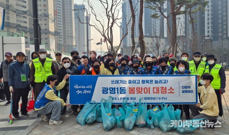 케이부동산뉴스 김교민 기자 | 광명시 광명1동 행정복지센터는 지난 17일 깨끗하고 쾌적한 생활환경을 조성하기 위해 유관 단체와 주민들과 함께 ‘봄맞이 대청소’를 실시했다.