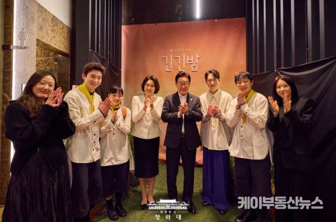 케이부동산뉴스 김교민 기자 | 이재명 대통령과 김혜경 여사는 오늘 저녁 서울 대학로 링크아트센터드림에서 창작뮤지컬 '긴긴밤'을 관람하고, 출연진과 제작진을 격려했다.