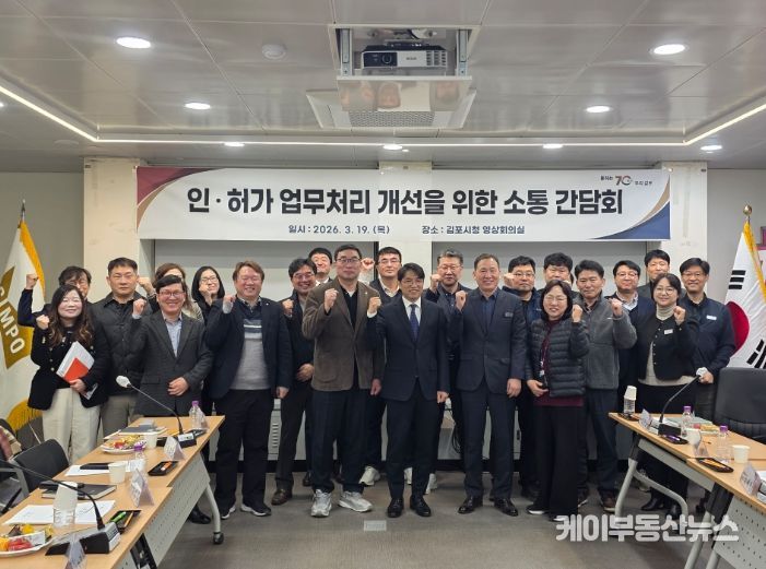 케이부동산뉴스 김교민 기자 | 김포시는 지난 3월 19일 김포시청 영상회의실에서 ‘인허가 업무처리 개선을 위한 소통 간담회’를 개최해 인허가 절차 간소화 및 처리기간 단축 등 방안을 논의하는 시간을 가졌다.