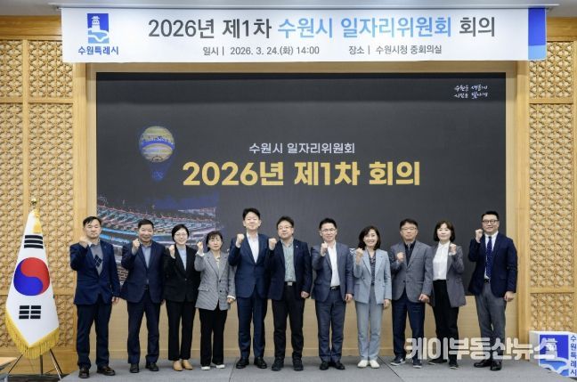수원시는 24일 중회의실에서 김현수 제1부시장 주재로 ‘2026년 수원시 일자리위원회 제1차 회의’를 열고, ‘2026년 일자리정책 추진계획(안)’을 심의·자문했다. 또 일자리위원회 위원 14명을 위촉했다.