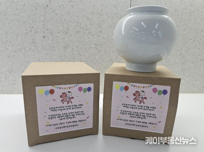 출생 신고를 마친 가정에 전달될 ‘소형 달항아리’는 예로부터 풍요와 복, 행운을 상징하는 전통 도자기다. 달항아리의 둥근 형태처럼 아이가 원만하고 건강하게 성장하기를 바라는 마음과 가정에 복이 가득 담기길 기원하는 메시지를 함께 전달할 예정이다.