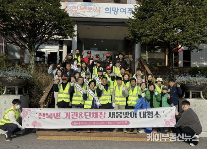 케이부동산뉴스 김교민 기자 | 여주시 산북면은 3월 24일 새봄을 맞아 쾌적한 마을 환경 조성을 위해 관내 주요 도로변에서 대대적인 환경정화 활동을 펼쳤다.