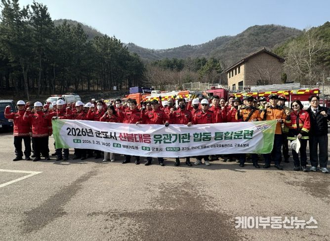 케이부동산뉴스 김교민 기자 | 군포시는 3월 25일 군포시 속달동 에덴기도원 일원에서 '2026년 군포시 산불대응 유관기관 합동 통합훈련'을 실시했다고 밝혔다.
