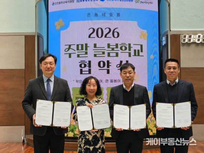 케이부동산뉴스 김교민 기자 | 인천동부교육지원청은 지난 1일 남동청소년센터, 인천청소년수련관, 연수구청소년센터와 ‘동부 온동네’ 지역 연계 찾아가는 주말 늘봄학교 운영을 위한 업무협약을 체결했다.