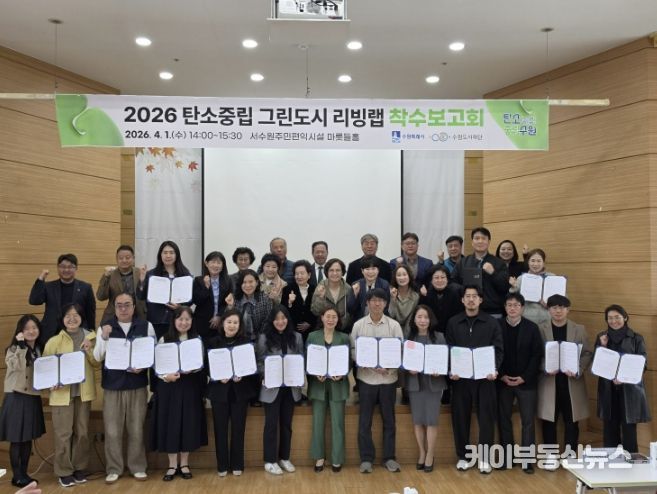 케이부동산뉴스 김교민 기자 | 수원특례시와 수원도시재단이 1일 서수원주민편익시설에서 ‘2026년 탄소중립 그린도시 리빙랩 착수보고회’를 열고, 탄소중립 그린도시 리빙랩 사업의 추진 방향을 알렸다.