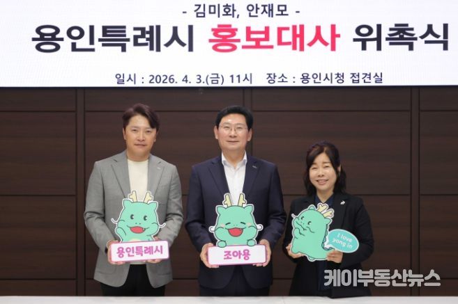 케이부동산뉴스 김교민 기자 | 용인특례시는 3일 용인 시민인 방송인 김미화씨와 배우 안재모씨를 홍보대사로 위촉했다.