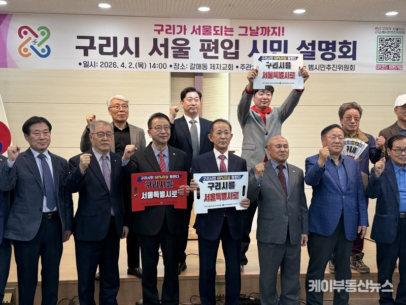 ‘구리가 서울 되는 범시민추진위원회’는 이날 구리시 갈매동 제자교회 2층 비전홀에서 시민설명회를 열고, 서울편입이 단순한 행정구역 변경을 넘어 시민 생활 전반의 변화를 이끌 수 있는 중대한 과제라고 밝혔다. 공동위원장은 이상배·이춘본·곽경국 씨가 맡고 있다.