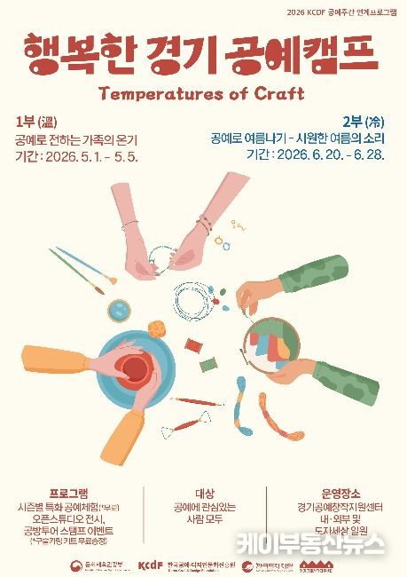 케이부동산뉴스 김교민 기자 | 한국도자재단이 오는 5월 1일부터 경기공예창작지원센터(여주) 일원에서 체험·전시·이벤트를 결합한 참여형 프로그램 ‘2026 행복한 경기 공예 캠프’를 개최한다.