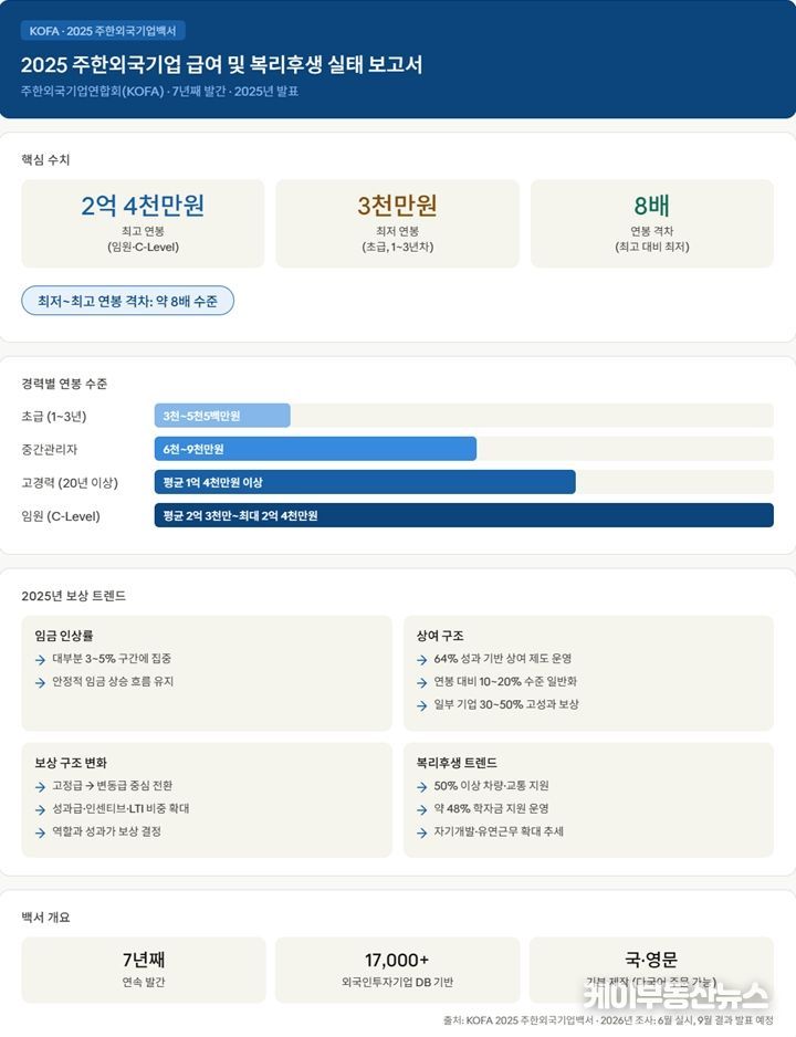 Salaries at Foreign-Invested Companies in Korea Reach KRW 240 Million at the Top and KRW 30 Million at the Bottom… 8-Fold Gap - KOFA Releases “2025 White Paper on Foreign-Invested Companies in Korea” (Enhanced Edition)