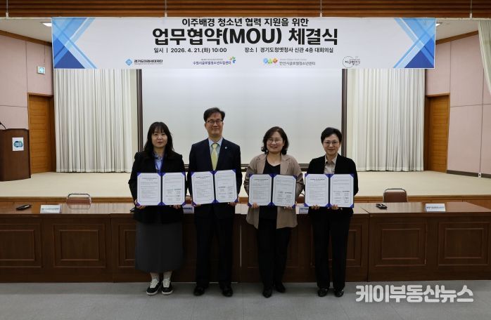 케이부동산뉴스 김교민 기자 | 경기도미래세대재단은 21일 수원시 팔달구 옛 경기도청사에서 수원시글로벌청소년드림센터, 안산시글로벌청소년센터, 화성시글로벌청소년센터와 이주배경 청소년 지원을 위한 업무협약을 체결했다.