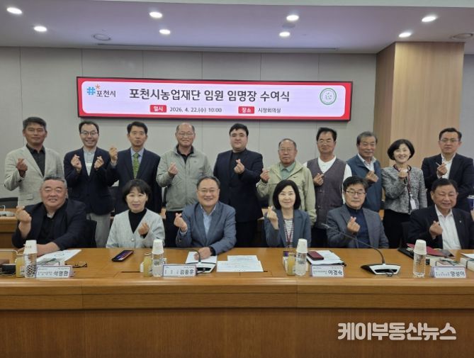 케이부동산뉴스 김교민 기자 | 재단법인 포천시농업재단은 4월 22일 공개모집 절차를 통해 선발된 비상임 이사 및 감사 13명을 대상으로 임명장 수여식 개최하고 2028년까지 운영되는 제3대 이사회 출범을 알렸다.