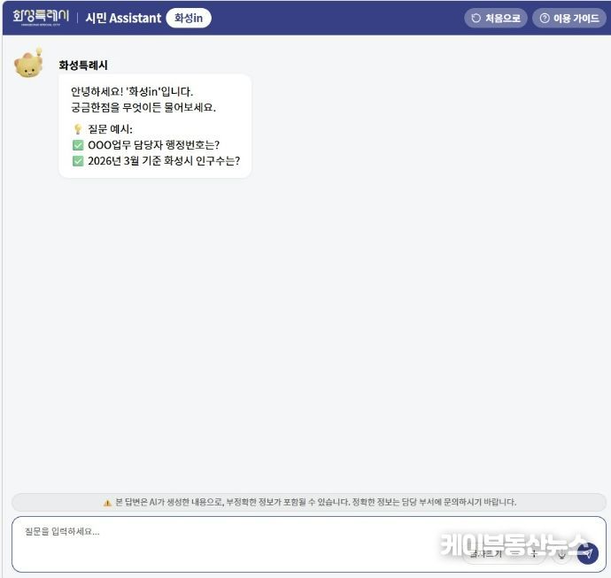 케이부동산뉴스 김교민 기자 | 화성특례시는 시민 체감형 행정서비스 강화를 위해 23일부터 ChatGPT 기반 대화형 AI 검색 서비스 ‘화성in’을 정식 운영한다.