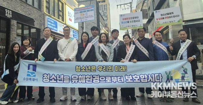 KKMNEWS 김교민 기자 | 수원시 팔달구는 지난 27일, 팔달구 가정복지과와 청소년범죄예방위원 팔달지구위원회 등 민·관 30여 명과 함께 수원역 로데오거리 일대에서 청소년 유해환경 개선 및 선도캠페인을 진행했다.