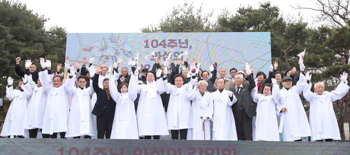 화성시가 제104회 3.1절을 맞아 독립운동가 후손과 화성시광복회 등 150여 명이 참석한 가운데 3.1절 기념식을 열었다.