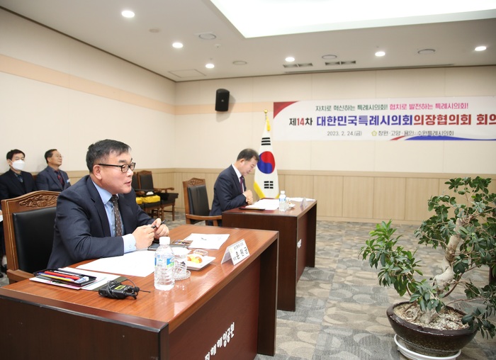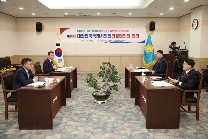 이날 회의에는 윤원균 의장을 비롯해 김영식 고양특례시의회 의장, 김이근 창원특례시의회 의장, 김기정 수원특례시의회 의장 등 관계자들이 참석했다.