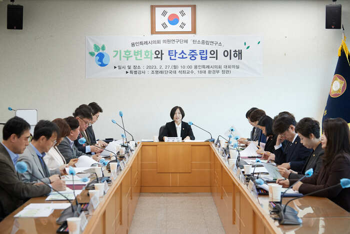 용인특례시의회 의원연구단체 '탄소중립연구소'(대표 신현녀)는 27일 오전 10시 대회의실에서 발대식 및 2050탄소중립 실현을 위한 전문가 특강을 개최했다.