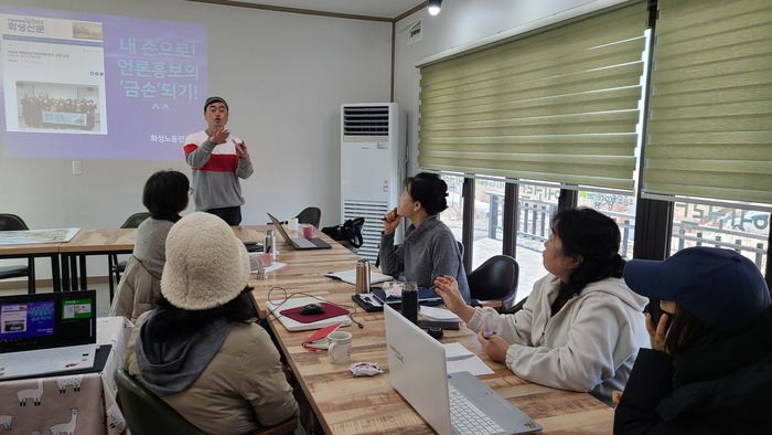 '내 손으로! 언론홍보의 금손되기!'란 제목으로 홍성규 화성노동인권센터 소장이 강의를 진행했다.