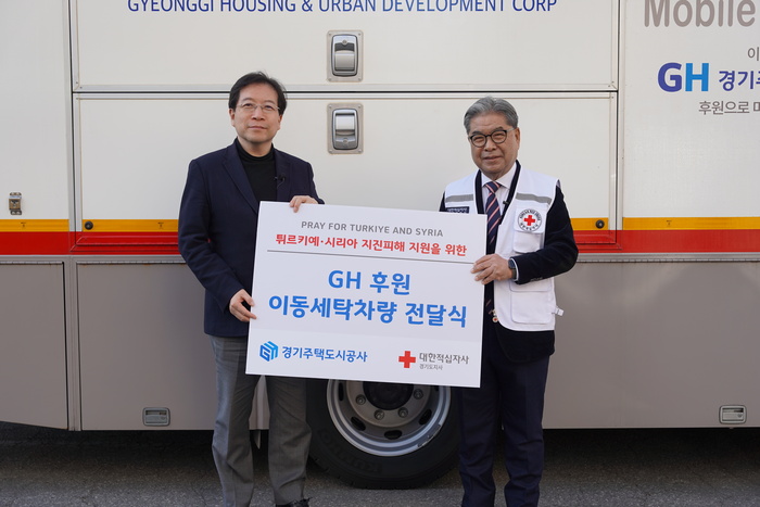경기주택도시공사(GH)가 최근 강진으로 막대한 피해를 입은 튀르키예 및 시리아 지역 현지에 재난구호용 이동세탁차량을 보낸다.