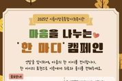 케이부동산뉴스 김교민 기자 | 시흥시장곡종합사회복지관은 연말을 맞아 지역사회에 따뜻한 마음을 전하기 위한 ‘마음을 나누는 한 마디’ 캠페인을 진행한다. 이번 캠페인은 이웃을 향한 응원의 말, 위로의 말, 사랑의 말을 담은 짧은 문장을 시민들로부터 응모 받아 서로에게 위로와 용기를 건네는 나눔의 장을 만들기 위해 마련됐다. 참여자는 직접 창작한 문장 또는 문학 작품 속 인용문 중 마음을 전하고 싶은 한 문장을 제출할 수 있다. 응모 기간은 11월 3일부터 11월 14일까지이며, 시흥시민이라면 누구나 참여할 수 있다. 참여 방법은 시흥시장곡종합사회복지관 1층 복도 현장 신청 또는 온라인으로 하면 된다. 선정된 문장은 내부 심사를 거쳐 캘리그래피 작품으로 제작되며, 오는 12월 시흥시장곡종합사회복지관 복도갤러리에서 전시된다. 전시된 작품은 시민들에게 한 해를 따뜻하게 마무리할 수 있는 작은 위로의 메시지로 전달될 전망이다. 시흥시장곡종합사회복지관 관계자는 “짧은 문장이지만, 시민 한 사람 한 사람의 따뜻한 마음이 모여 이웃에게 큰 위로가 될 것”이라며 “많은 시민이 이번 캠페인에 참여해 따뜻한 시흥을 함