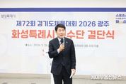 케이부동산뉴스 김교민 기자 | 화성특례시의회는 26일 화성종합경기타운 3층 라운지홀에서 열린 제72회 경기도체육대회 화성시 선수단 결단식에 참석해 선수단을 격려하고 4연패 달성을 위한 결의를 다졌다. 이날 행사에는 배정수 의장을 비롯해 김종복 문화복지위원장, 송선영·이용운 의원, 화성시체육회 임원과 종목단체 관계자, 선수단 등 약 150여 명이 참석했다. 이날 결단식은 경기도체육대회 출전을 앞둔 선수단의 사기를 높이고 각오를 다지는 자리로 마련됐다. 화성특례시 선수단은 오는 4월 16일부터 18일까지 광주시 일원에서 열리는 제72회 경기도체육대회에 출전한다. 육상, 수영, 축구 등 27개 종목에 참가해 종합우승 4연패에 도전한다. 배정수 의장은 “묵묵히 쌓아온 훈련의 시간과 노력을 믿고 끝까지 당당하게 경기에 임해주시기 바란다”며 “선수 여러분의 땀과 투혼이 화성특례시의 자부심”이라고 말했다. 이어 “화성특례시의회도 선수들이 오직 경기에 집중할 수 있도록 체육 환경 조성과 지원에 최선을 다하겠다”며 “4연패 달성을 진심으로 기원한다”고 덧붙였다. 화성특례시의회는 선수들이 충