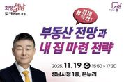 케이부동산뉴스 김교민 기자 | 성남시는 오는 11월 19일 오후 3시 50분~5시 30분 시청 1층 온누리에서 ‘부동산 전망과 내 집 마련 전략’을 주제로 한 희망성남 토크콘서트 8강을 연다. 이번 초빙 강사는 고종완 한국자산관리연구원장이다. 고종완 원장은 변화하는 부동산시장 속에서 시민들이 알아야 할 부동산 정책, 향후 시장 전망, 내 집 마련 전략 등에 관해 강연한다. 고 원장은 한양대학교 도시공학박사로 건국대학교 부동산대학원 초빙교수, 한양대학교 부동산융합대학원 특임교수, LH자문위원 등을 역임했다. 현재 국민연금공단 대체투자위원회 위원, 금융위원회 금융발전심의회 위원 등으로 활동하고 있다. 저서로 ‘살 집 팔 집’, ‘대한민국 부동산 전쟁’ 등이 있다. 강연은 무료로 진행되며, 성남시 평생학습 통합 플랫폼 ‘배움숲’ 홈페이지를 통해 선착순 600명까지 신청할 수 있다. 성남시는 경제 특강 2탄으로 오는 12월 9일 김광석 한국경제산업연구원 경제연구실장을 초빙해 희망성남 토크콘서트 올해 마지막 강연(9강)을 연다.