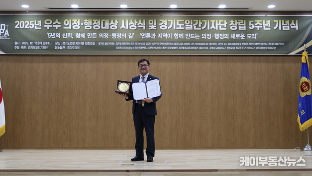 케이부동산뉴스 김교민 기자 | 경기도의회 양우식 의회운영위원회 위원장(국민의힘, 비례)이 12월 10일 경기도일간기자단이 주관한 ‘2025 우수 의정·행정대상 시상식’에서 최고 영예인 ‘경기발전 그랜드마스터상(Grand Master Award for Gyeonggi Development)’을 수상했다. 경기발전 그랜드마스터상은 의정·행정 분야에서 4년 연속 지속적인 성과를 창출하며 경기도 발전에 탁월한 공적을 남긴 인물에게 수여되는 최고 명예의 특별상으로, 장기간에 걸친 책임 있는 리더십과 실질적 성과를 동시에 평가한다는 점에서 상징성이 크다. 양우식 위원장은 국민의힘 총괄수석부대표를 비롯해 혁신추진특별위원회 위원장, 의회운영위원회 위원장 등을 역임하며 경기도의회 제도 개선과 운영 혁신을 선도해 왔다. 특히 도지사 비서실과 정무라인을 행정사무감사 대상에 포함시켜 집행부에 대한 의회의 견제·감시 기능을 실질적으로 강화했다는 평가를 받는다. 또한 경기도의회 상임위원회 증설을 통해 정책 심의 역량을 확대하고, 경기도청과 경기도교육청 예산결산특별위원회를 분리 운영함으로써 예산 심사의 전문성과 독립성을 한층 높였다. 이는 광역의회 예산 검증 체계를 구조적으로 강화한