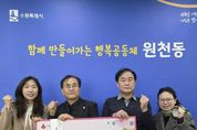 케이부동산뉴스 김교민 기자 | 지난 17일 경기중앙지방법무사회 수원지부는 원천동 저소득 지역주민들을 돕기 위해 성금 100만 원을 원천동행정복지센터(동장 김선혁)에 후원했다. 이번에 전달된 성금은 경제적 어려움을 겪고 있는 원천동 저소득 지역주민들을 위해 사용될 예정으로, 지역사회 나눔 문화 확산에 기여할 것으로 기대된다. 경기중앙지방법무사회 수원지부 관계자는 “작은 정성이지만 지역 내 어려운 이웃들에게 도움이 되길 바란다”며 “앞으로도 지역사회와 함께하는 다양한 나눔 활동을 지속해 나가겠다”고 밝혔다. 김선혁 원천동장은 “어려운 이웃을 위한 따뜻한 나눔에 깊이 감사드린다”며 “후원금은 도움이 꼭 필요한 저소득 주민들을 위해 소중히 사용하겠다”고 전했다. 한편, 경기중앙지방법무사회 수원지부는 매년 꾸준히 성금을 전달하여 지역사회 복지 증진을 위해 힘쓰고 있다.