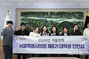 케이부동산뉴스 김교민 기자 | 서울특별시의회 최호정 의장(국민의힘, 서초4)은 26일 의회 본관 의장접견실에서'제8기 겨울방학 대학생 인턴 간담회'를 개최하고, 청년들과 서울시 정책 현안, 일·가정 양립 고민 등을 주제로 진솔한 대화를 나눴다. 이번 간담회에는 대학생 인턴 7명이 참가했으며, 각자가 수행 중인 정책 연구 주제와 활동 소감을 공유했다. 참석한 대학생 인턴들은 본인의 전공과 관련된 정책 연구를 소개하며 활동 경험을 공유했다. 주요 연구 주제는 △서울시와 2개 자치구의 기후 위기 대응 △서울시 교육환경 변화 대응 △서울시 폐교 활용과 관련된 정책 방안 △서울시 축제 육성 및 활성화 방안에 대한 연구 △한강 이용정보 통합 앱 구축 및 활용방안 연구 △우리나라 정치·사회 갈등에 대한 대학생들의 인식 및 갈등 연구 등이다. 인턴들은 “정책이 논의되고 결정되는 과정을 가까이에서 직접 경험할 수 있는 매우 뜻깊은 시간이었다”고 소감을 밝혔다. “특히 정책결정의 무게와 공공부문의 책임을 현장에서 체감했다. 향후 진로와 사회적 역할에 대해 깊이 고민해보는 계기가 됐다”고 전했다. 최호정 의장은 “짧은 기간 동안