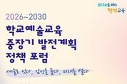 케이부동산뉴스 김교민 기자 | 서울특별시교육청은 ‘예술로 잇다, 감성을 품다, 미래를 열다’를 주제로 10월 30일, 제2서울창의예술교육센터에서 『2026~2030 학교예술교육 중장기 발전계획 비전 선포식』을 개최한다. 선포식은 ‘AI 아트랩 서울’건립을 통해 미래형 예술교육의 새 장을 여는 서울시교육청의 비전을 공유하는 자리로, 예술교육 분야 교수 및 전문가, 학생, 학부모, 초‧중‧고‧특수 교원 등 200여 명이 참석할 예정이다. 서울시교육청 2026~2030 학교예술교육 중장기 발전계획은 ‘예술이 일상이 되는 학교’를 비전으로 제시하고, △'미래역량 기반 학교예술교육' △'마음을 채우는 서울예술교육' △'지역과 상생하는 예술생태계'의 세 가지 추진 전략을 통해 서울 학교예술교육의 발전 방향을 구체화했다. 이번 계획은 예술이 학생의 마음 성장을 돕는 교육적 힘이 되도록, 음악·미술·연극·영화·뮤지컬 등 다양한 예술교육 경험을 통해 정서적으로 어려움을 겪는 학생도 예술로 마음을 채우고 성장할 수 있도록 지원하는데 중점을 두고 있다. 나아가 모든 학생이 예술을 누리며 일상에서 직접 예술을 경험할 수 있게 하는