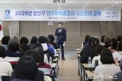 케이부동산뉴스 김교민 기자 | 수원시 장안구는 지난 10월 31일 장안구청 대회의실에서 ‘2025 인구주택총조사 사전준비 교육’을 실시했다. 2025년 인구주택총조사의 원활한 추진을 위해 채용된 118명의 조사원을 대상으로 진행된 이번 교육은 조사 수행에 필요한 실무역량을 강화화고 책임감과 현장 대응능력을 높이기 위하여 마련됐다. 교육에 앞서 이일희 장안구청장은 “인구주택총조사는 인구·가구·주택 관련 종합정보를 파악하여 주요 정책의 기본자료로 활용되고, 국가와 지역의 정책 방향을 결정하는 가장 기본적이면서 중요한 통계조사”라며 “이번 조사에 참여하게 된 조사원들이 가구 방문 시 안전에 유의하며, 꼼꼼하고 성실하게 조사에 임해주길 바란다”고 격려했다. 11월 18일까지 진행되는 2025 인구주택총조사는 인터넷 조사 또는 전화 조사를 통해 참여할 수 있으며, 인터넷·전화 조사 미응답 가구를 대상으로 11월부터는 조사원이 방문 면접조사를 진행할 예정이다.